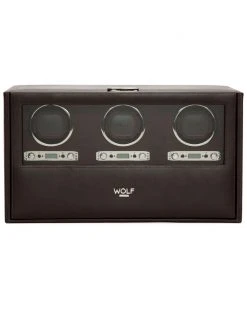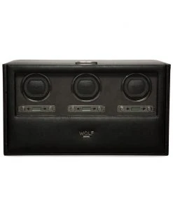 WOLF Blake Leather Triple Winder With Storage Home Jewelry Boxes & Watch Winders