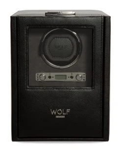 WOLF Blake Leather Single Winder With Storage Home Jewelry Boxes & Watch Winders