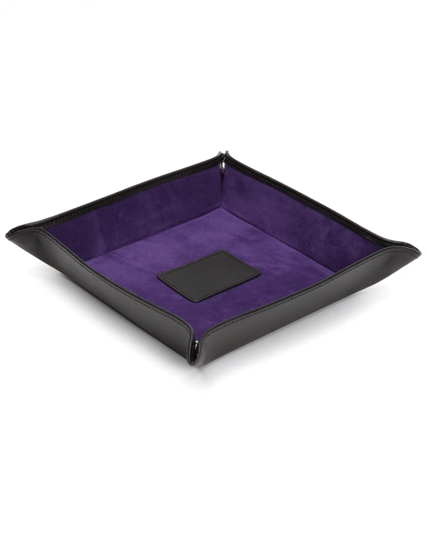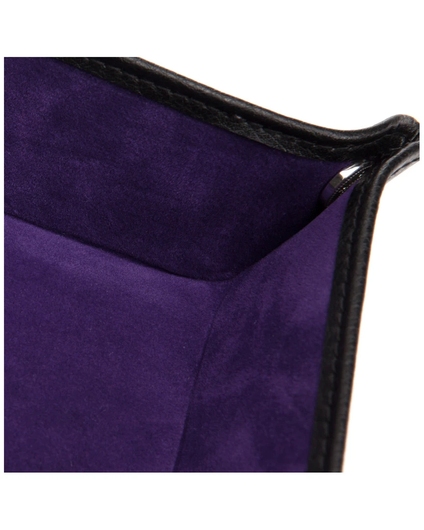 - Design details: Stylish and classic, Blake is brought to life with top grain leathers, chrome and bold accents. Whether traveling or at home, the stylish leather Blake Coin Tray keeps your essentials in one place. Includes purple ultrasuede lining and snap closure; Storage: 1 storage compartment