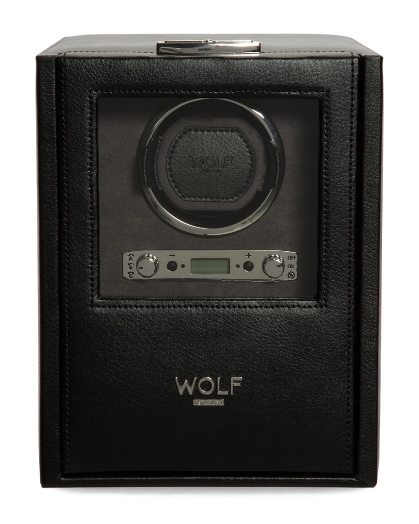 WOLF Blake Leather Single Winder With Storage Home Jewelry Boxes & Watch Winders
