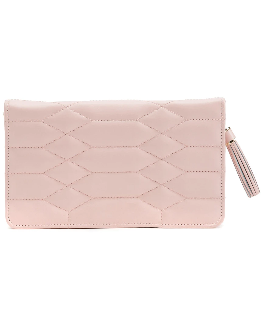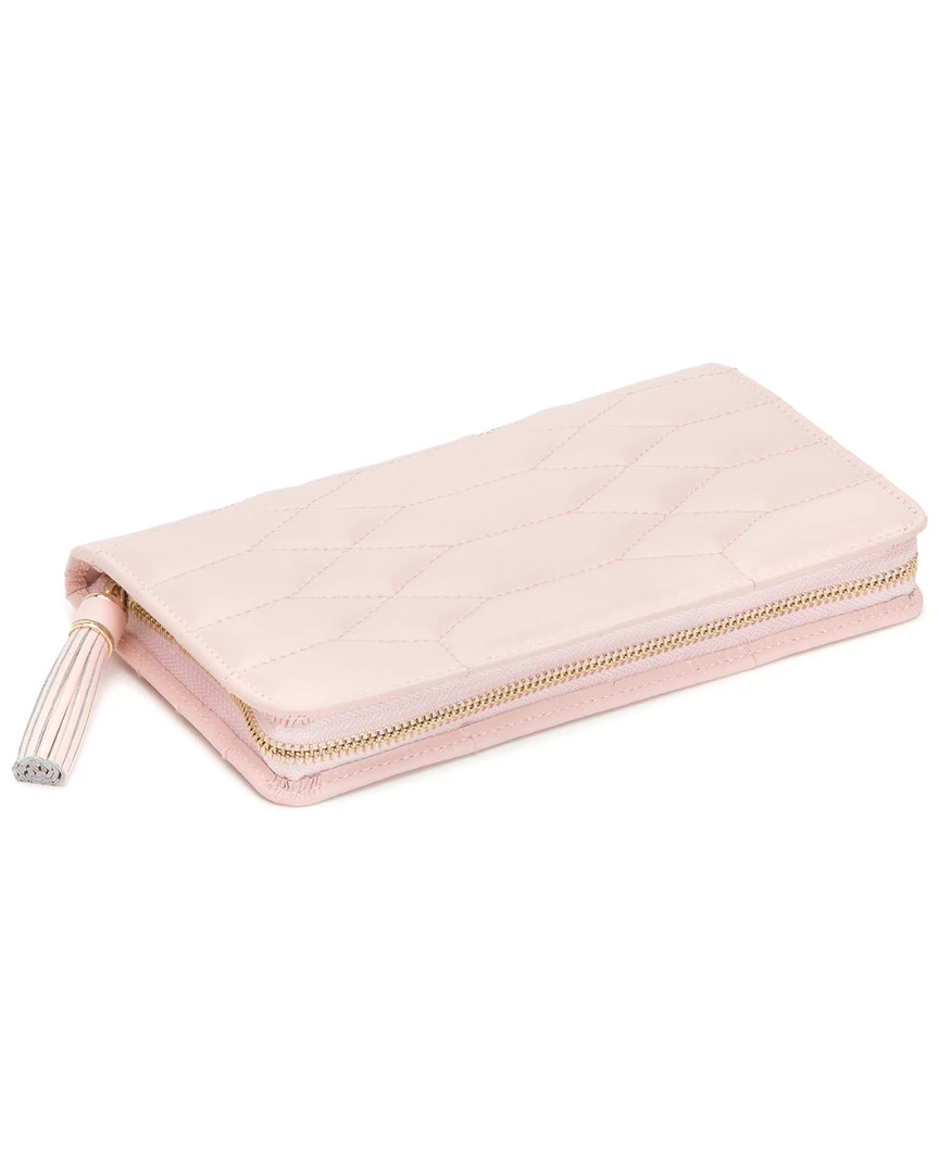 - Design details: handcrafted in genuine leather; The embodiment of sophistication and style. Caroline, a timeless classic with elegant soft lines of the 50s, supple diamond quilted leather accented with gold hardware. This refined rose quartz jewelry portfolio is the perfect home for your precious jewelry and heirlooms. Traveling with Caroline makes safekeeping your jewelry whilst on the go a snap.