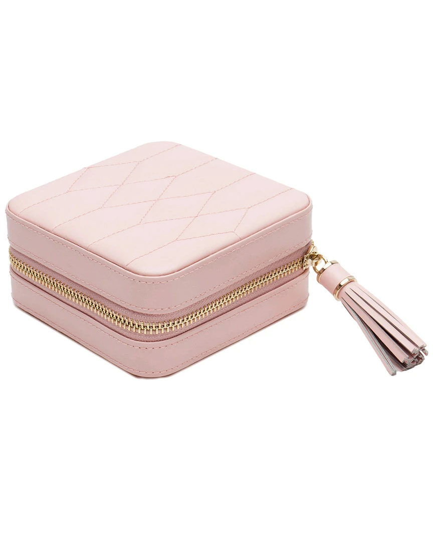 - Design details: The embodiment of sophistication and style. Caroline, a timeless classic with elegant soft lines of the 50s, supple diamond quilted leather accented with gold hardware. This refined rose quartz zip travel case is the perfect home for your precious jewelry and heirlooms. Traveling with Caroline makes safekeeping your jewelry whilst on the go a snap. ; Storage: 7 ring rolls, 4 compartments and 3 necklace hooks with pocket
